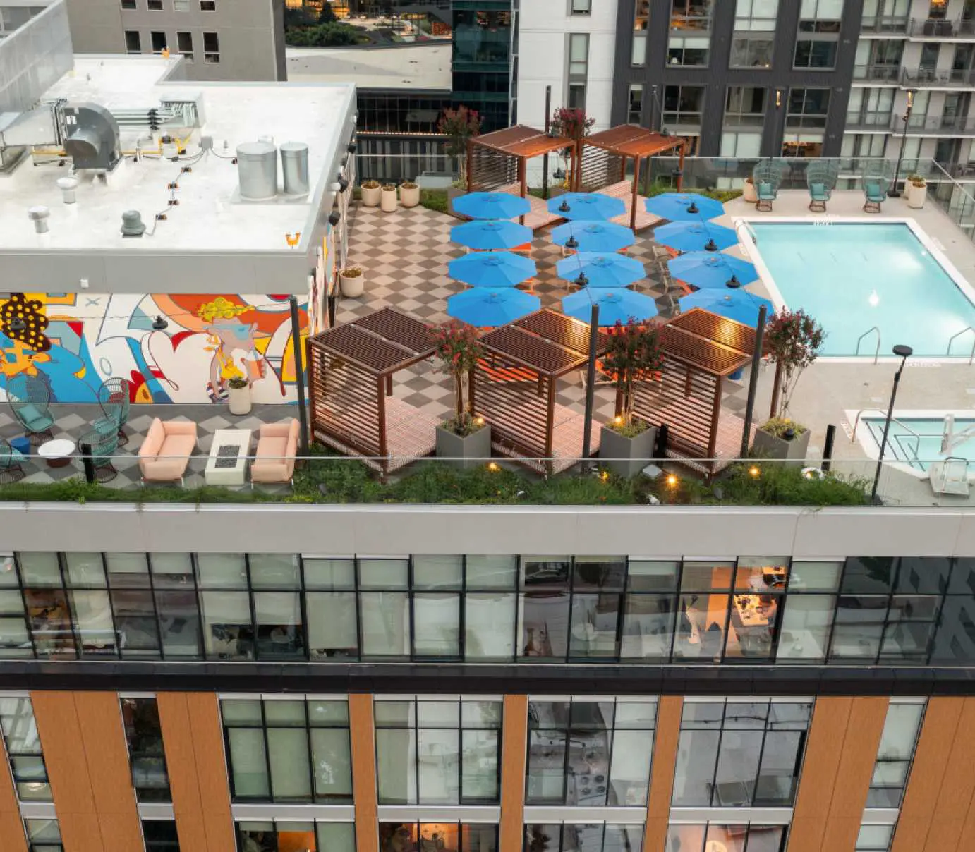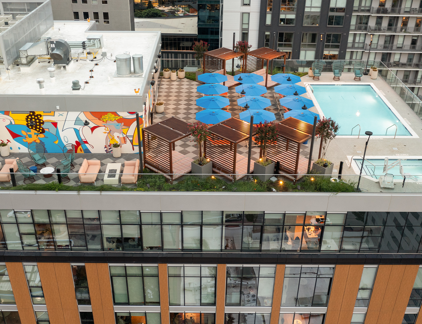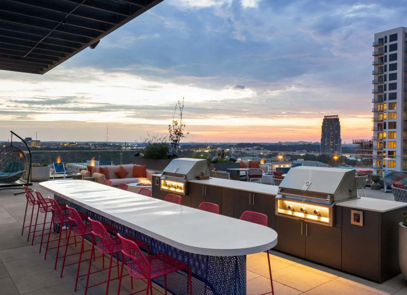 FSG partnered with Core Spaces and Curioso to manage the FF&E sourcing and procurement for Hub Atlanta, a 19-story, 792-bed student housing community developed by Core Spaces. Located in Midtown Atlanta, just steps from Georgia Tech and Georgia State University, Hub Atlanta offers a range of fully furnished units, including studios and multi-bedroom apartments, designed to meet the needs of today’s students. The development features resort-style amenities such as a rooftop pool and sundeck, fitness center with spa, coworking lounges, and a coffee bar. The design incorporates contemporary elements with locally sourced art and high-end finishes, creating a vibrant and comfortable living environment for students.